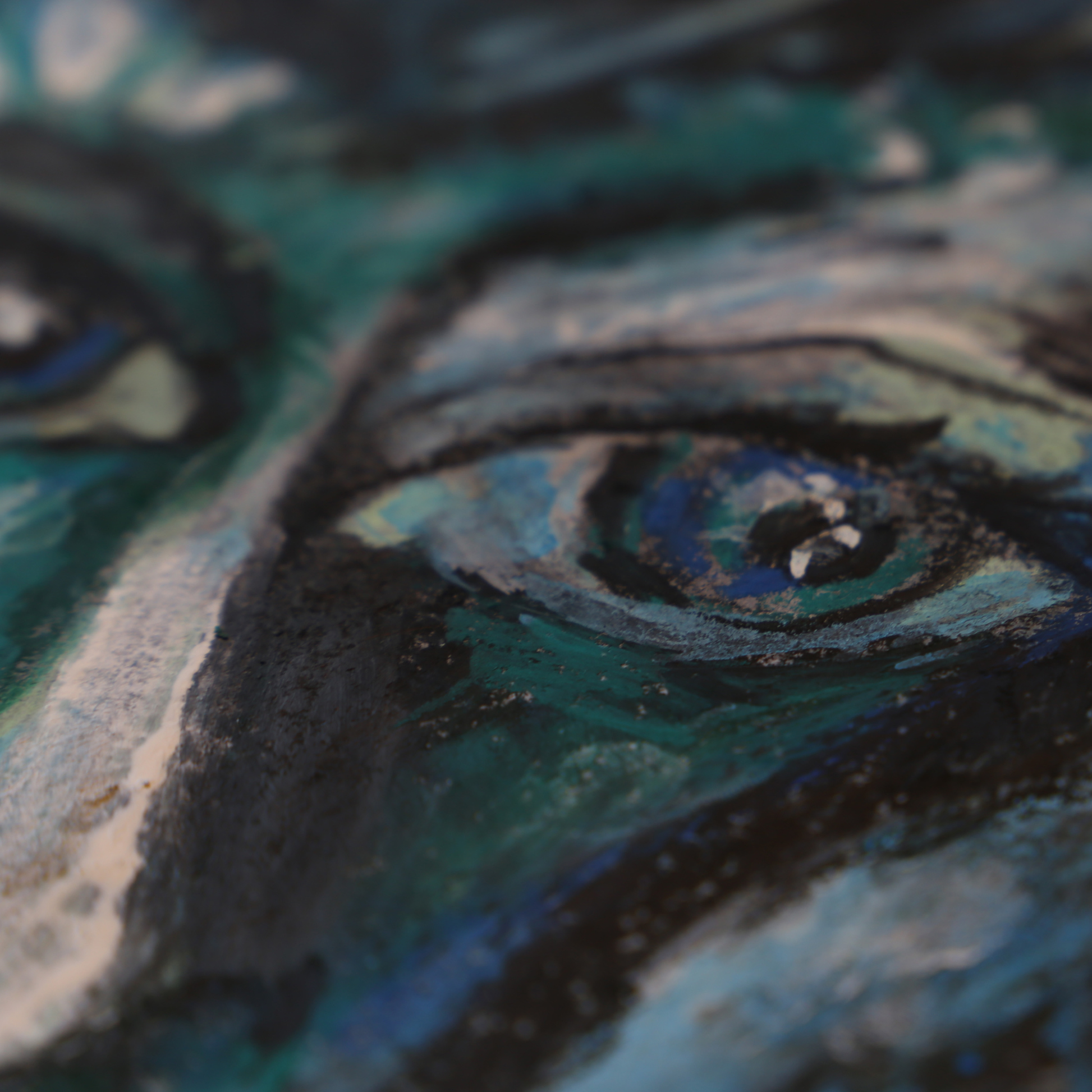 Emotion emerges in waves in Blue Mood—a deeply expressive portrait shaped by layers of ink and oil pastel. Ayda Pakzad Afshar blends human form and feeling into a fluid composition of cool blues and intense gazes, evoking a quiet vulnerability that lingers in the viewer’s mind.