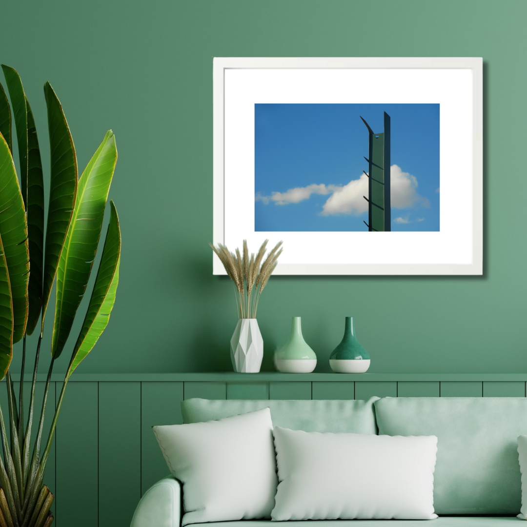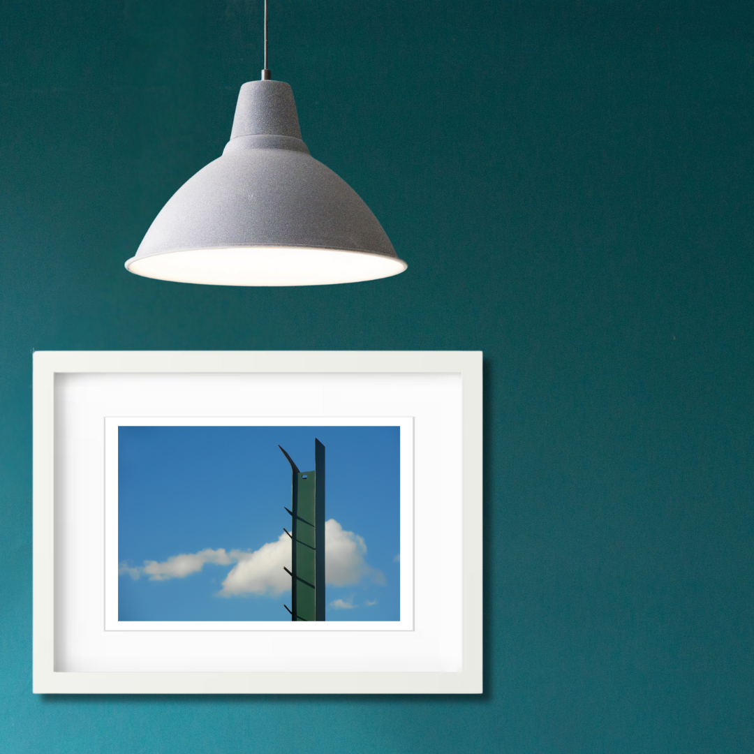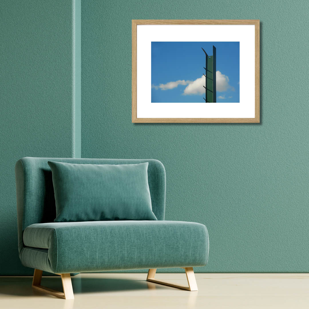 Printed on premium photo paper and framed with a white border, this photograph explores line, space, and the soft imperfection of a fleeting sky.