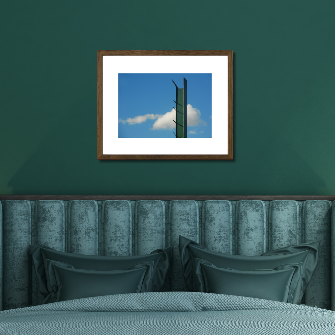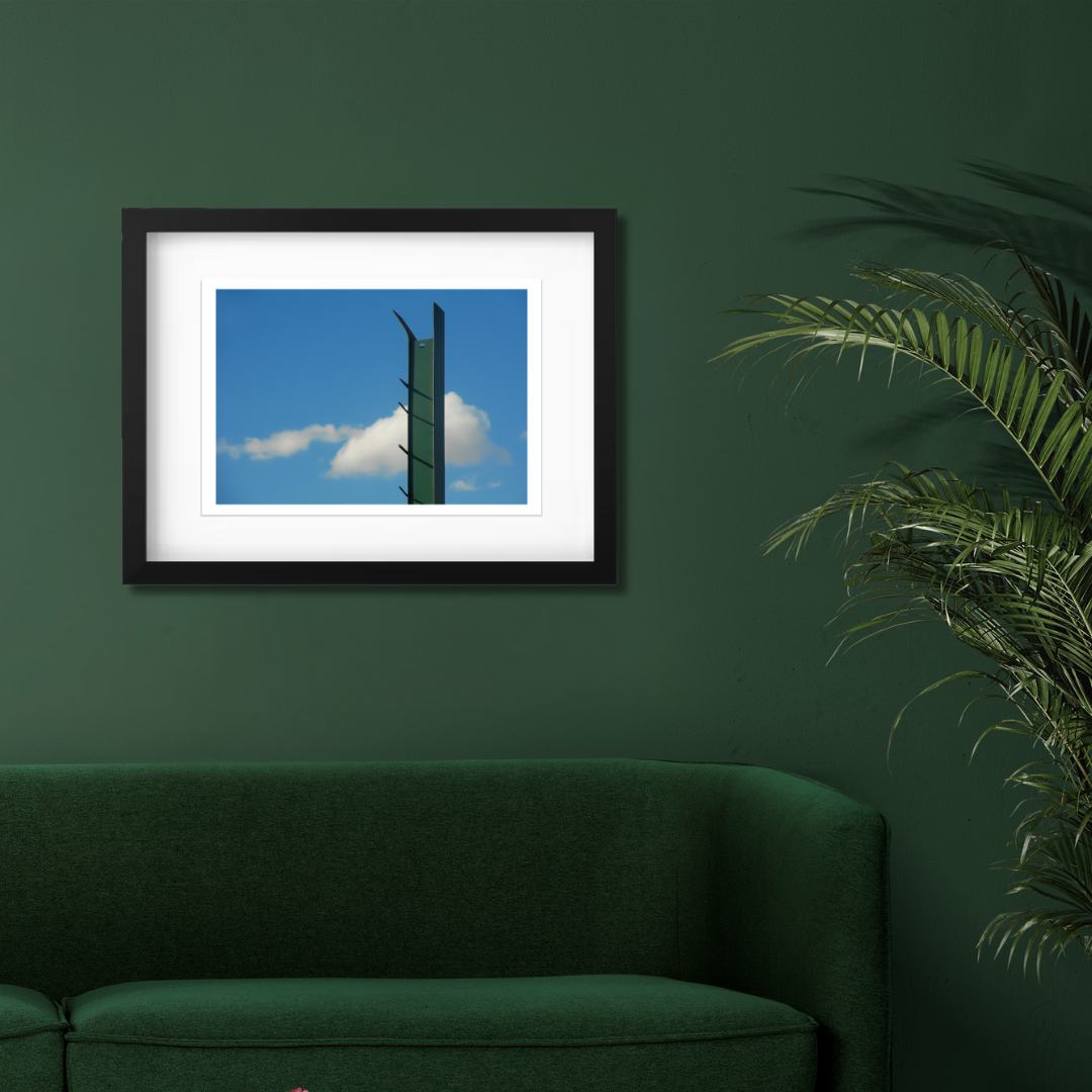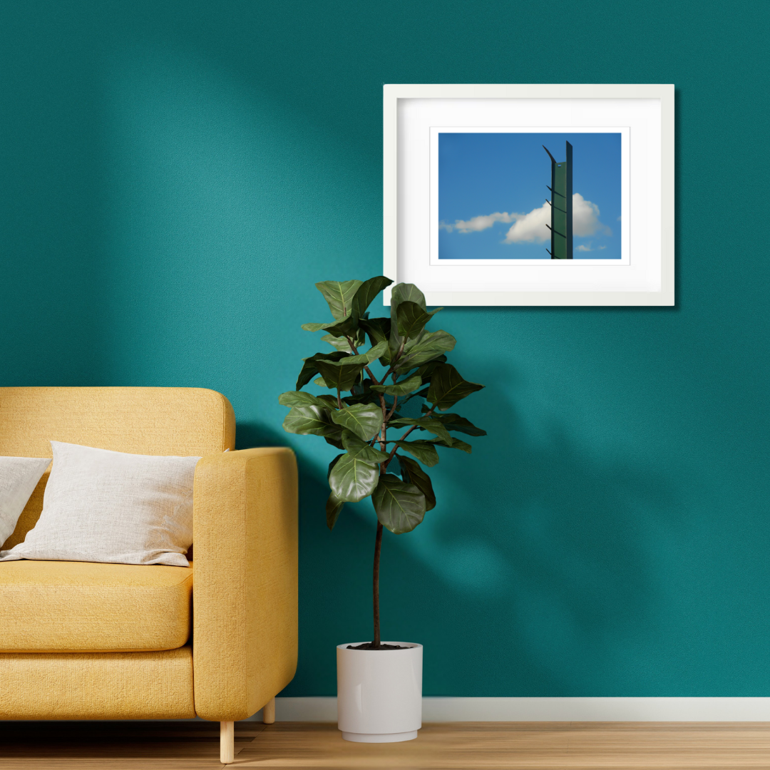 Printed on premium photo paper and framed with a white border, this photograph explores line, space, and the soft imperfection of a fleeting sky.