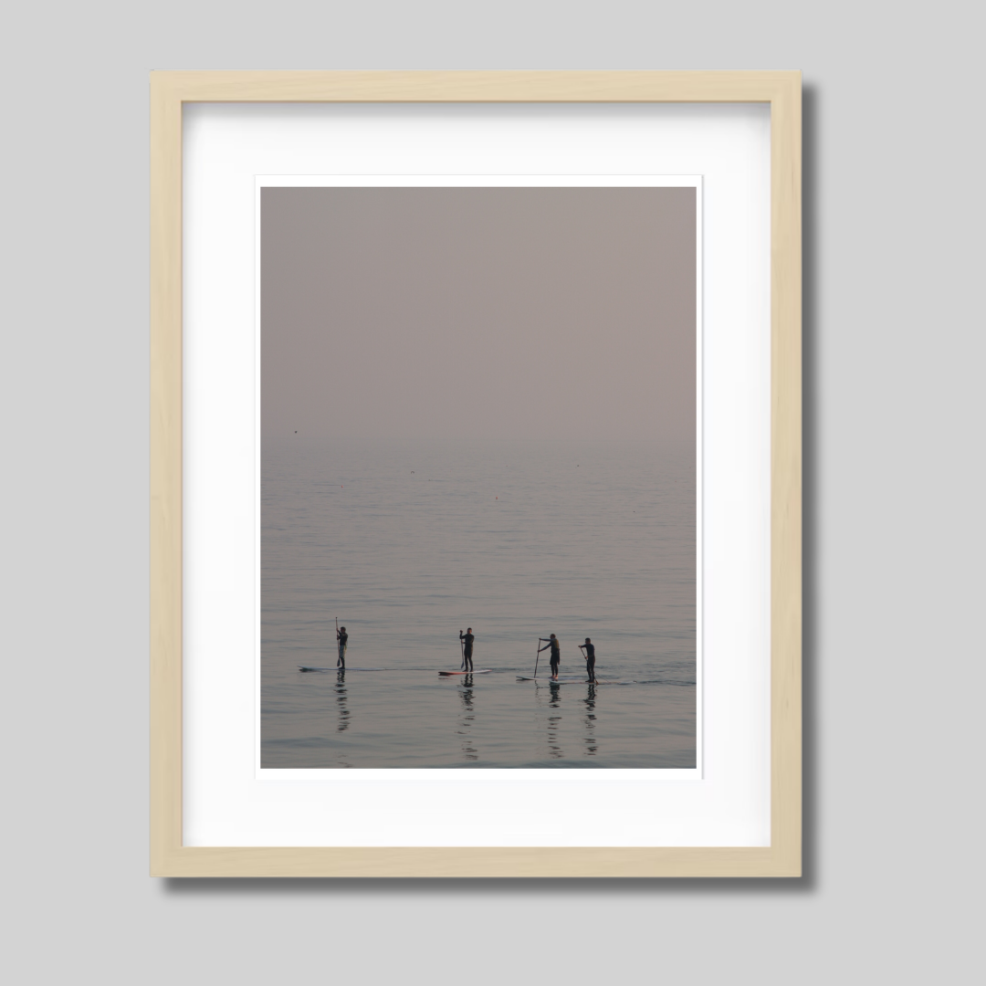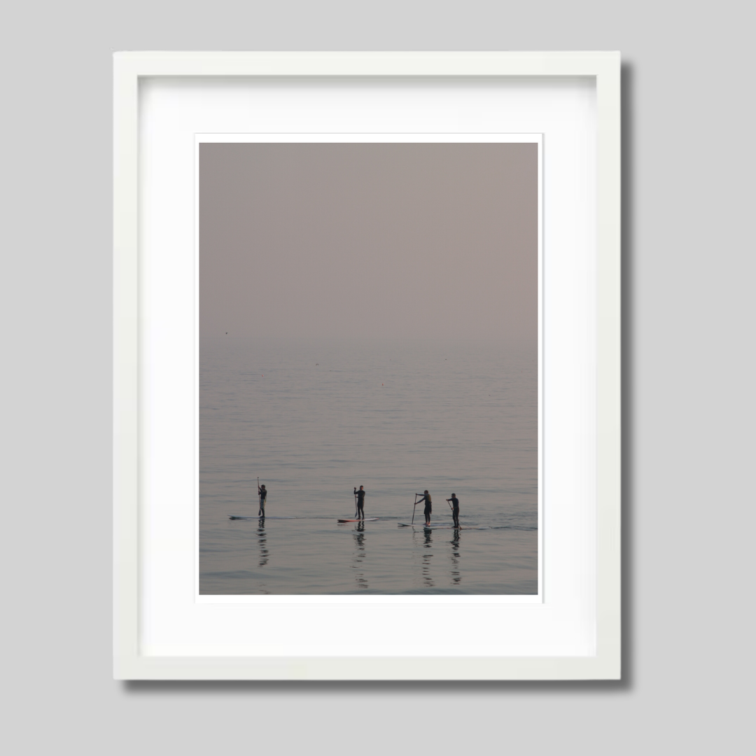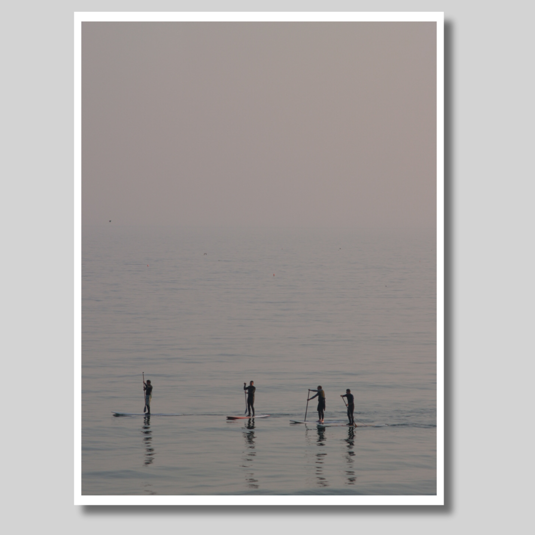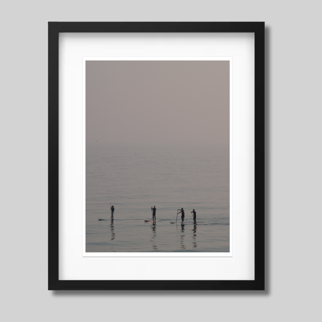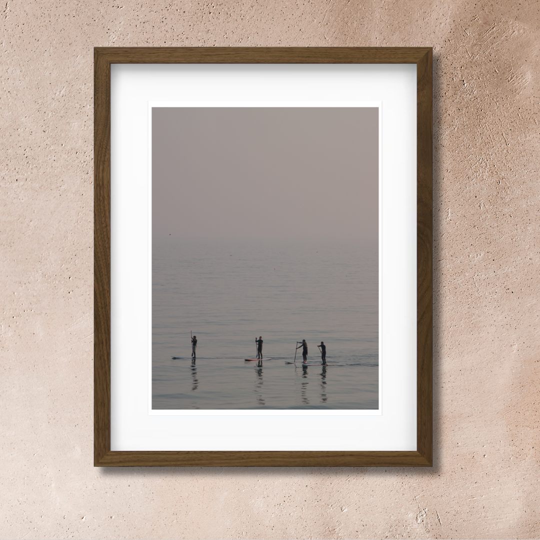 In Drift, Namdar Shirazian captures a moment of calm precision as four paddleboarders glide across an endless, glasslike sea. The figures, silhouetted against a muted horizon, appear suspended between water and sky, evoking a dreamlike stillness and meditative grace.