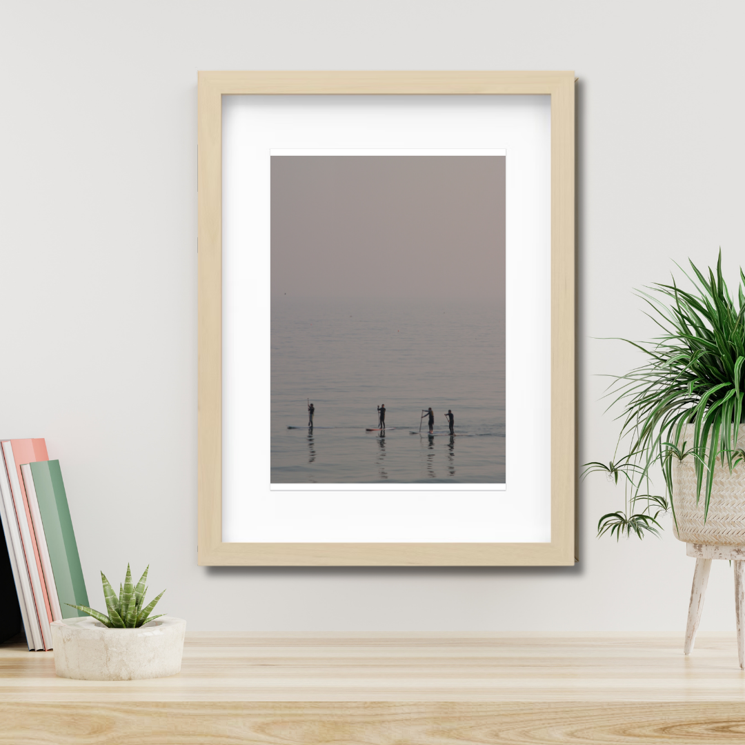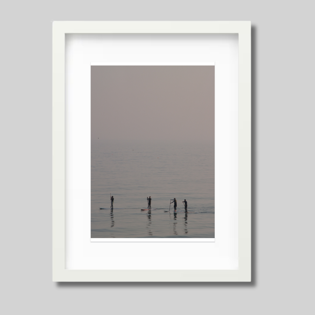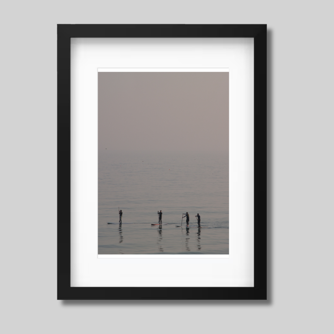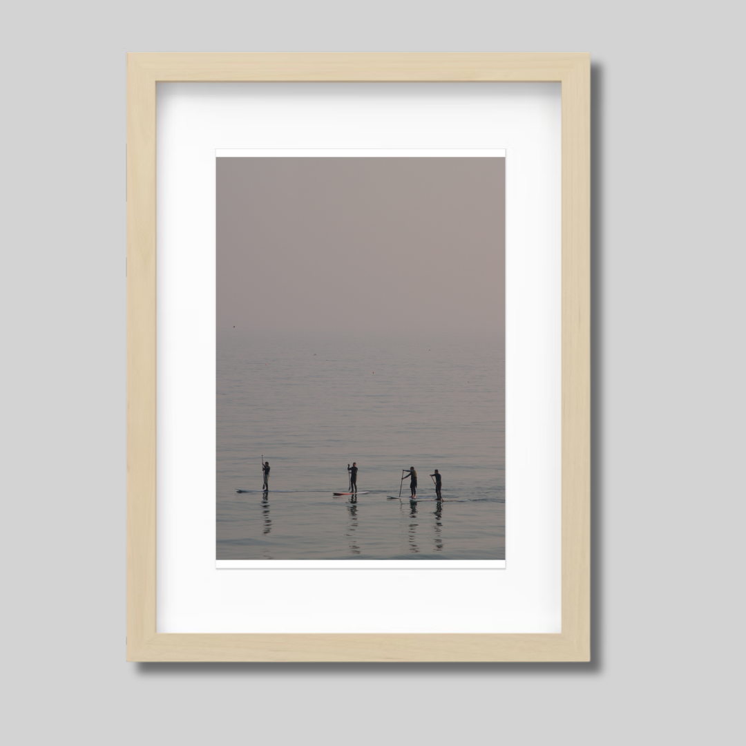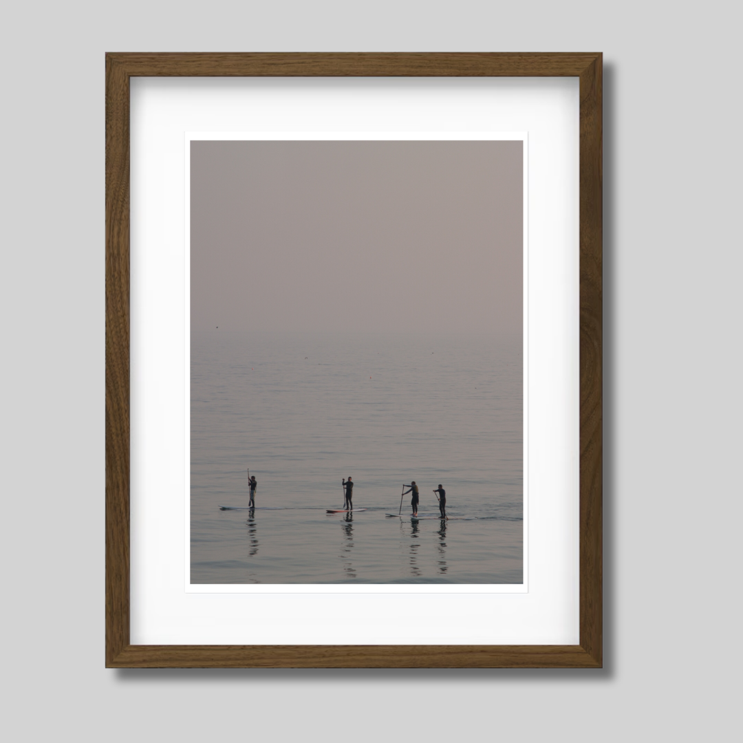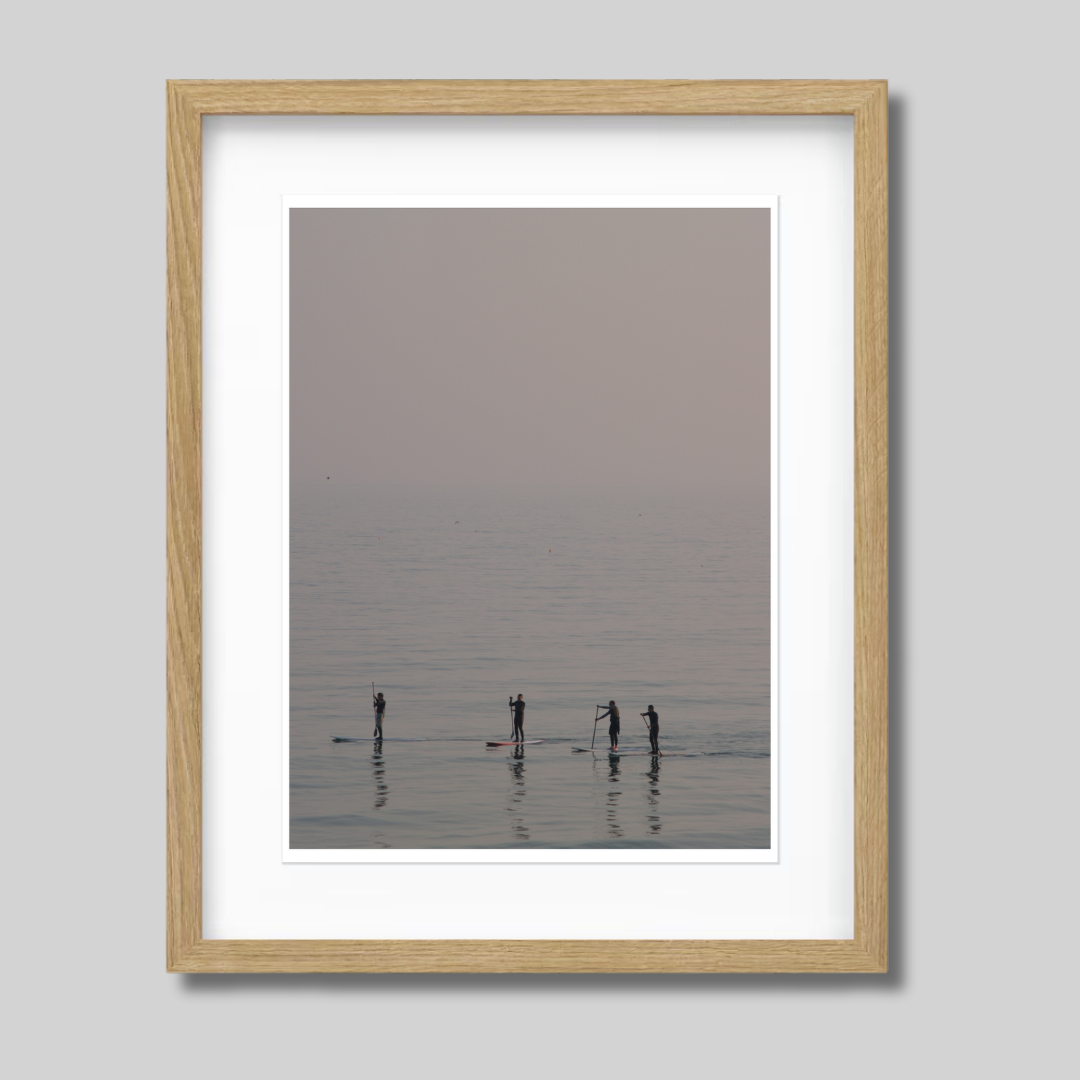 In Drift, Namdar Shirazian captures a moment of calm precision as four paddleboarders glide across an endless, glasslike sea. The figures, silhouetted against a muted horizon, appear suspended between water and sky, evoking a dreamlike stillness and meditative grace.