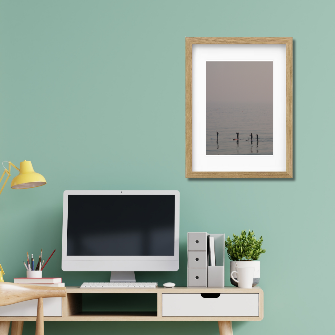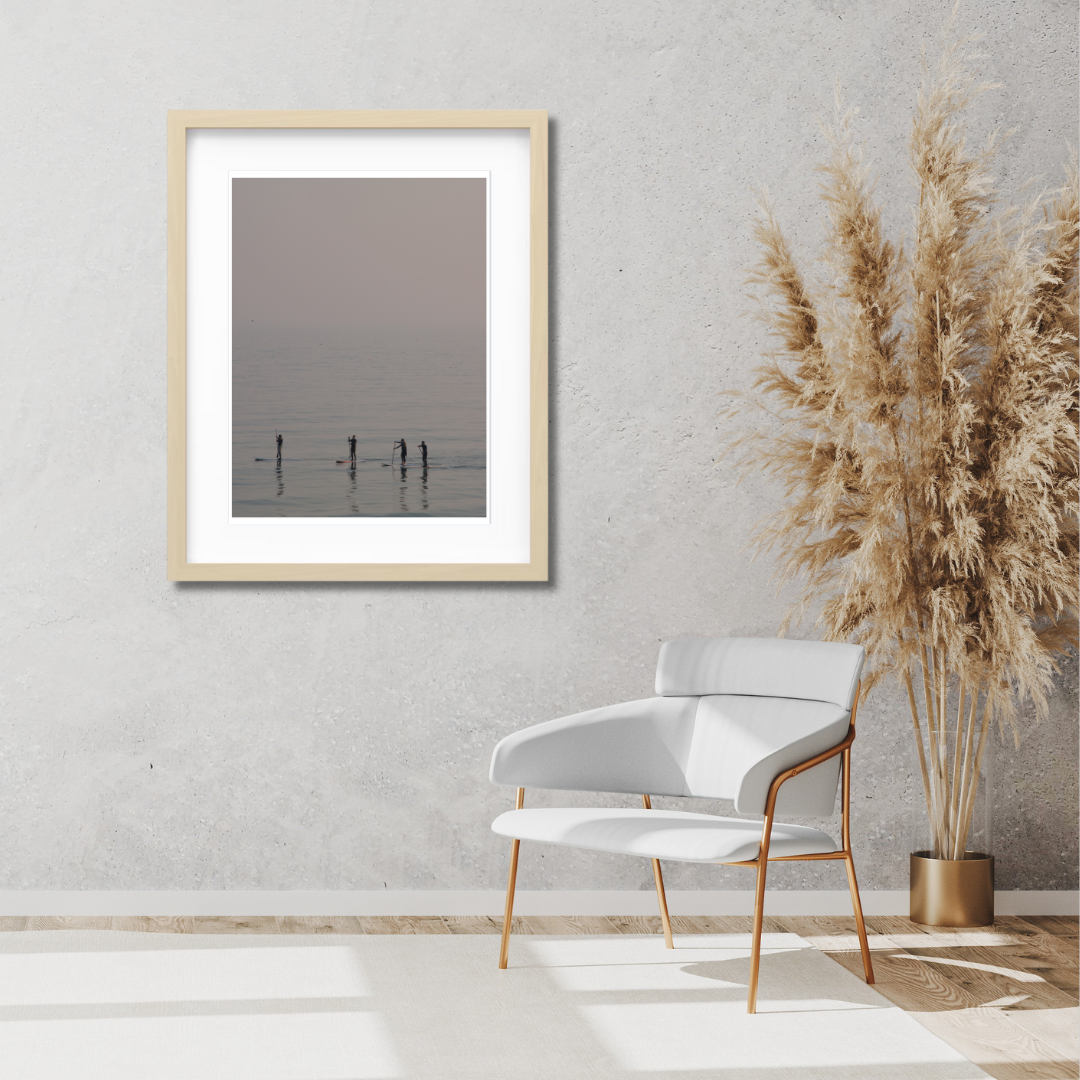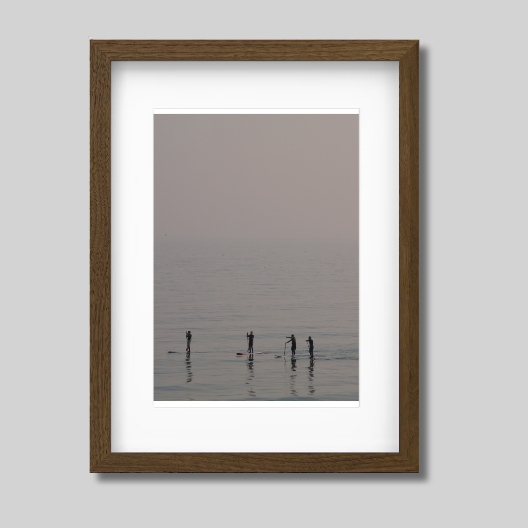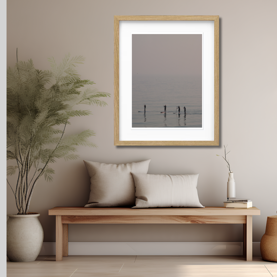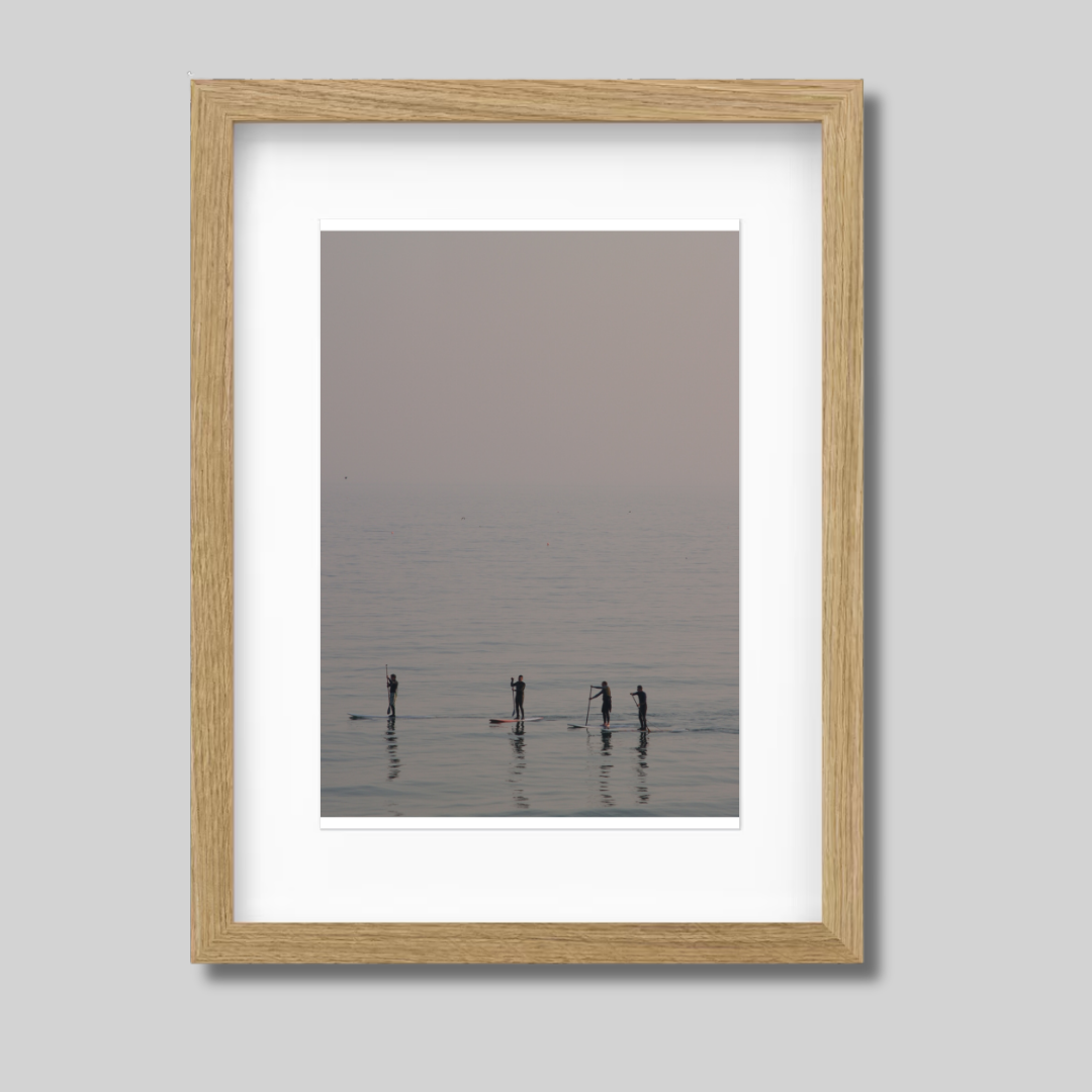 In Drift, Namdar Shirazian captures a moment of calm precision as four paddleboarders glide across an endless, glasslike sea. The figures, silhouetted against a muted horizon, appear suspended between water and sky, evoking a dreamlike stillness and meditative grace.