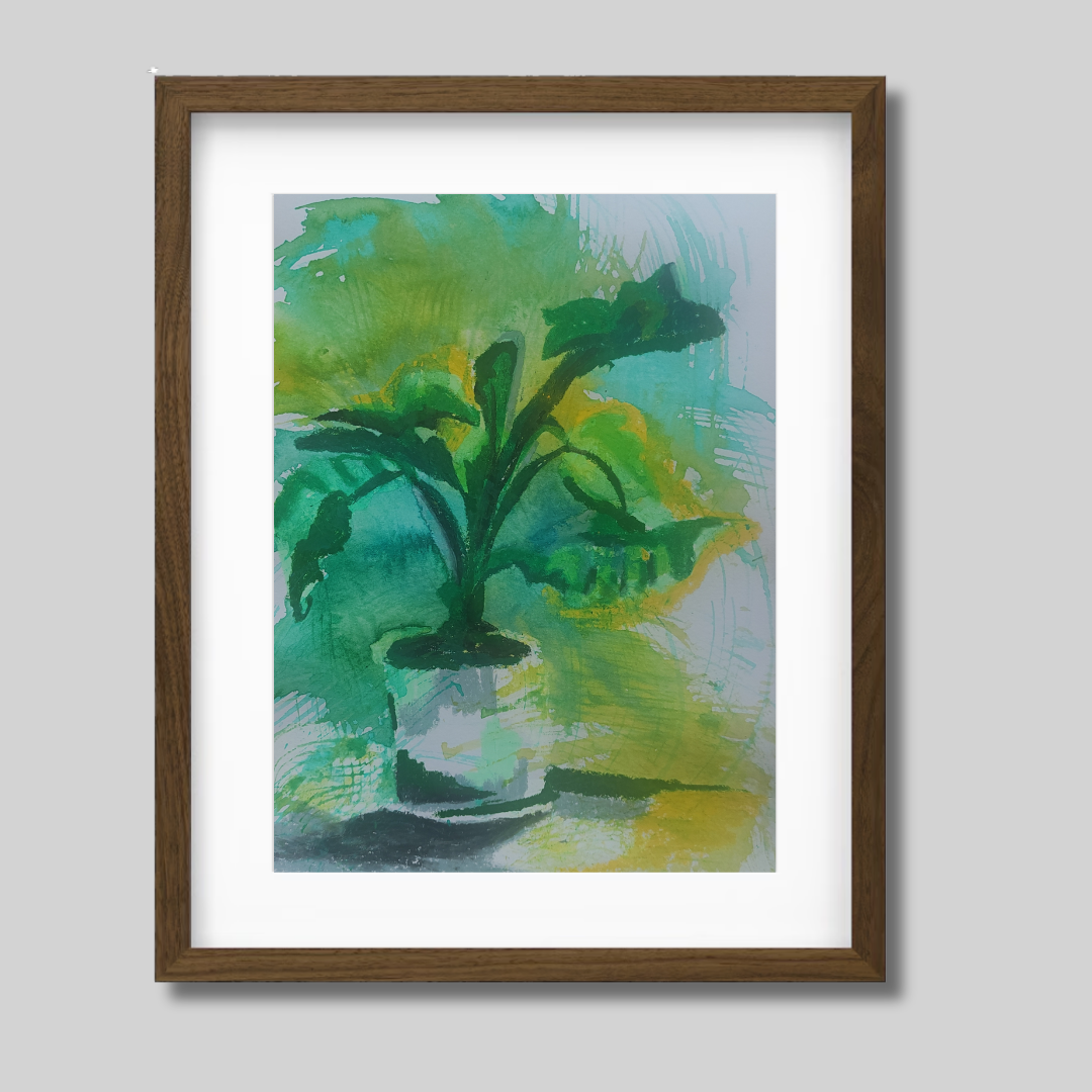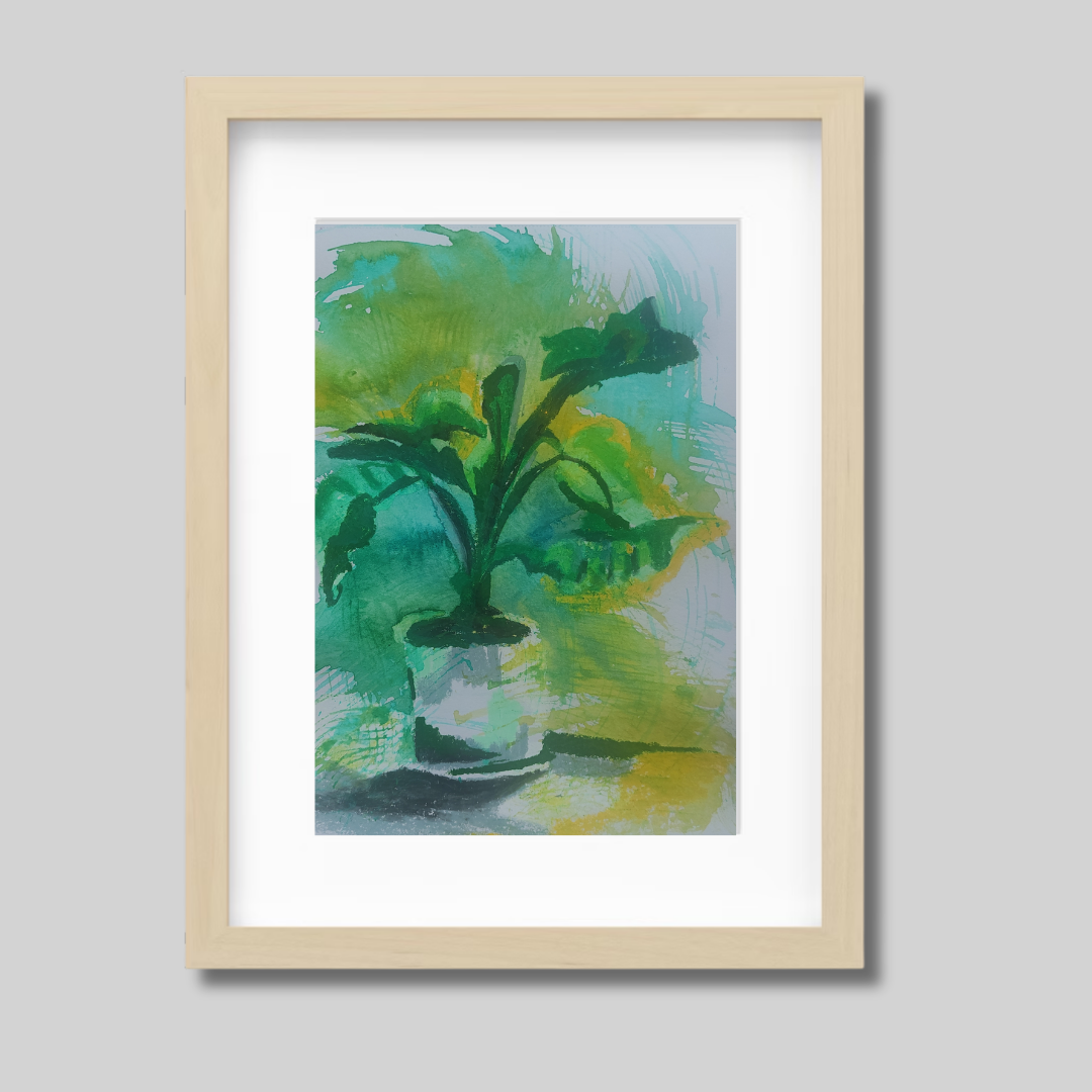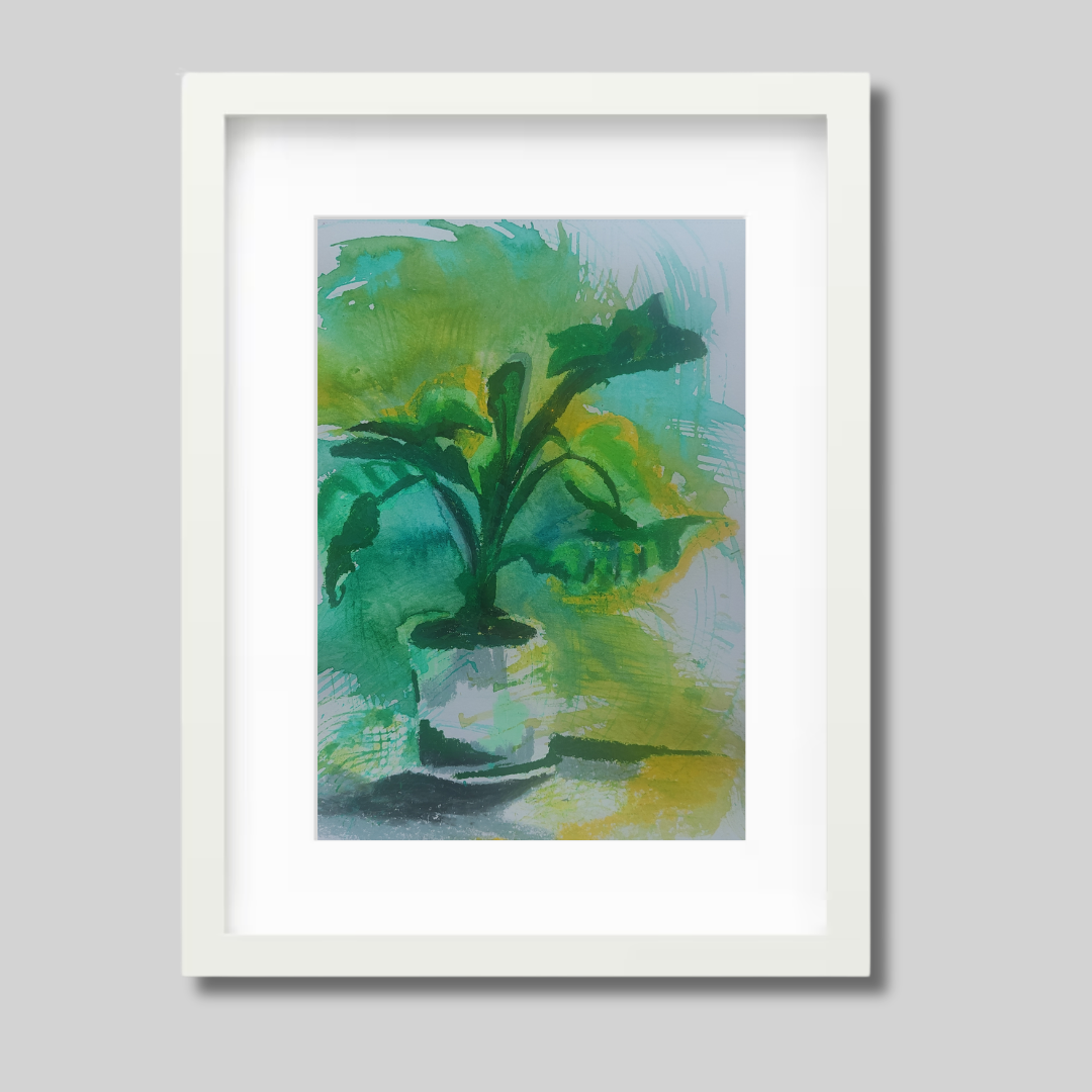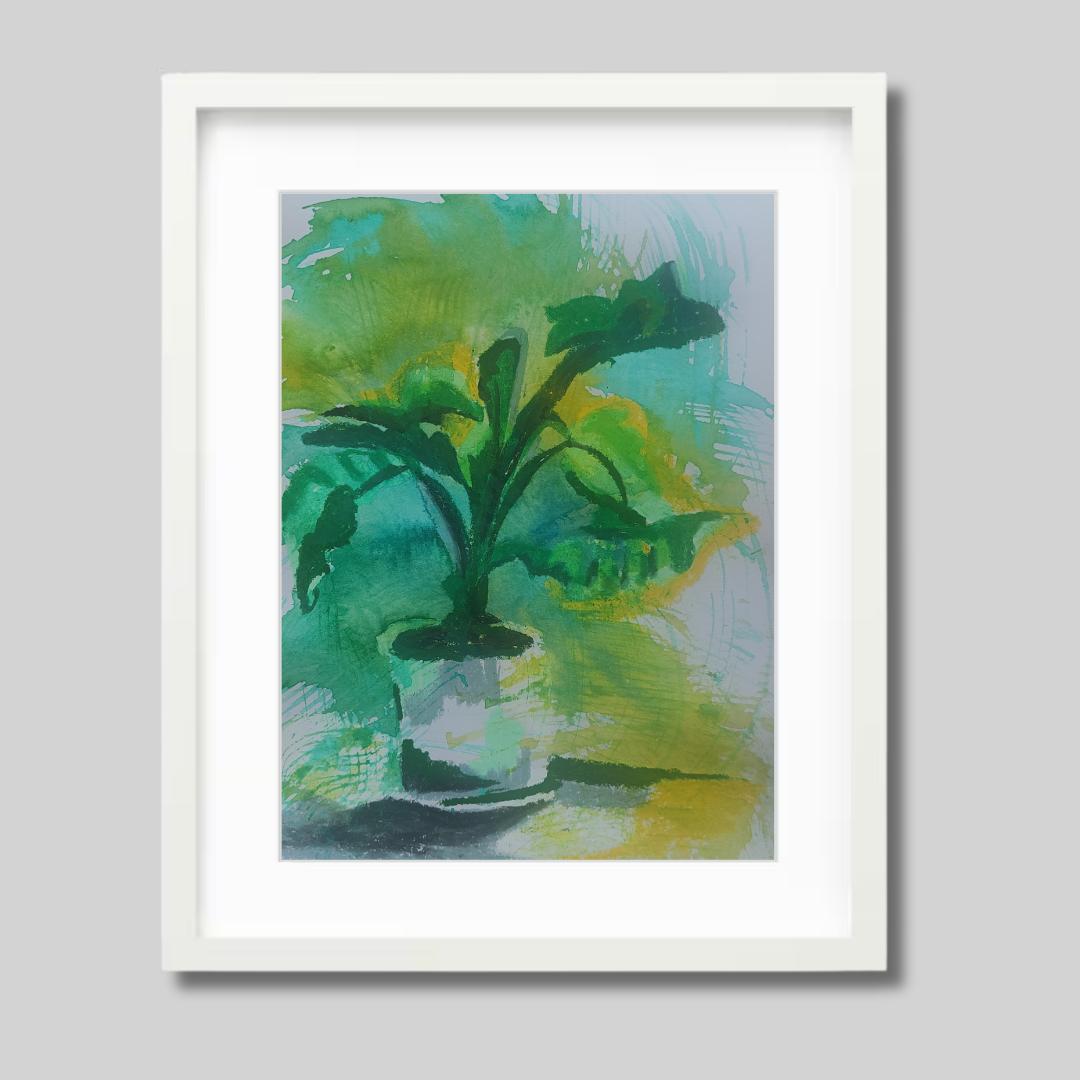 A vivid expression of nature's quiet persistence—Green Grow 2 continues Ayda Pakzad Afshar’s exploration of botanical rhythms. Created with ink and wax pastel on cardboard, this piece captures the spontaneous energy of growth through layered mark-making and bold movement.