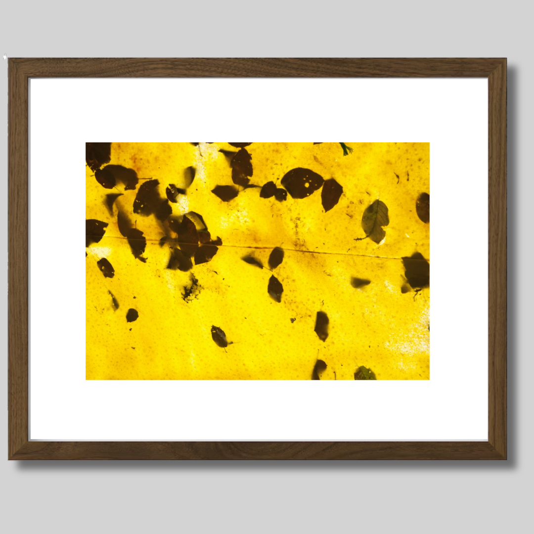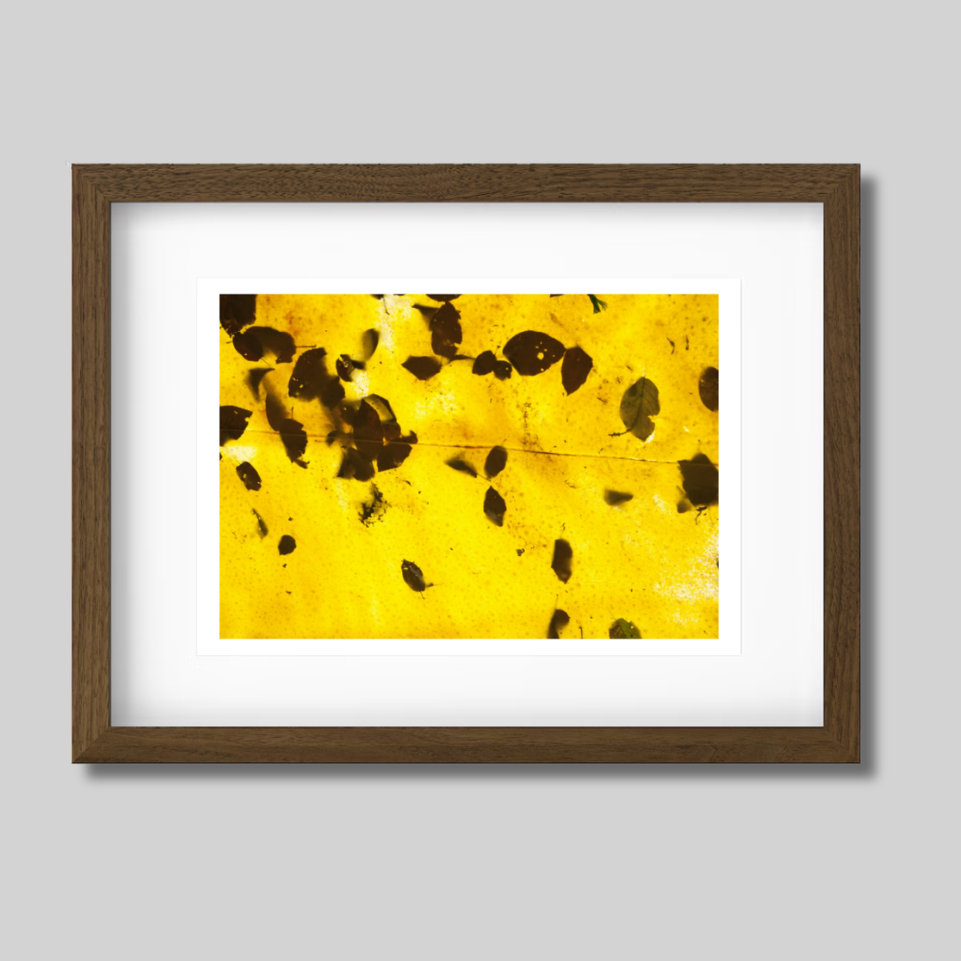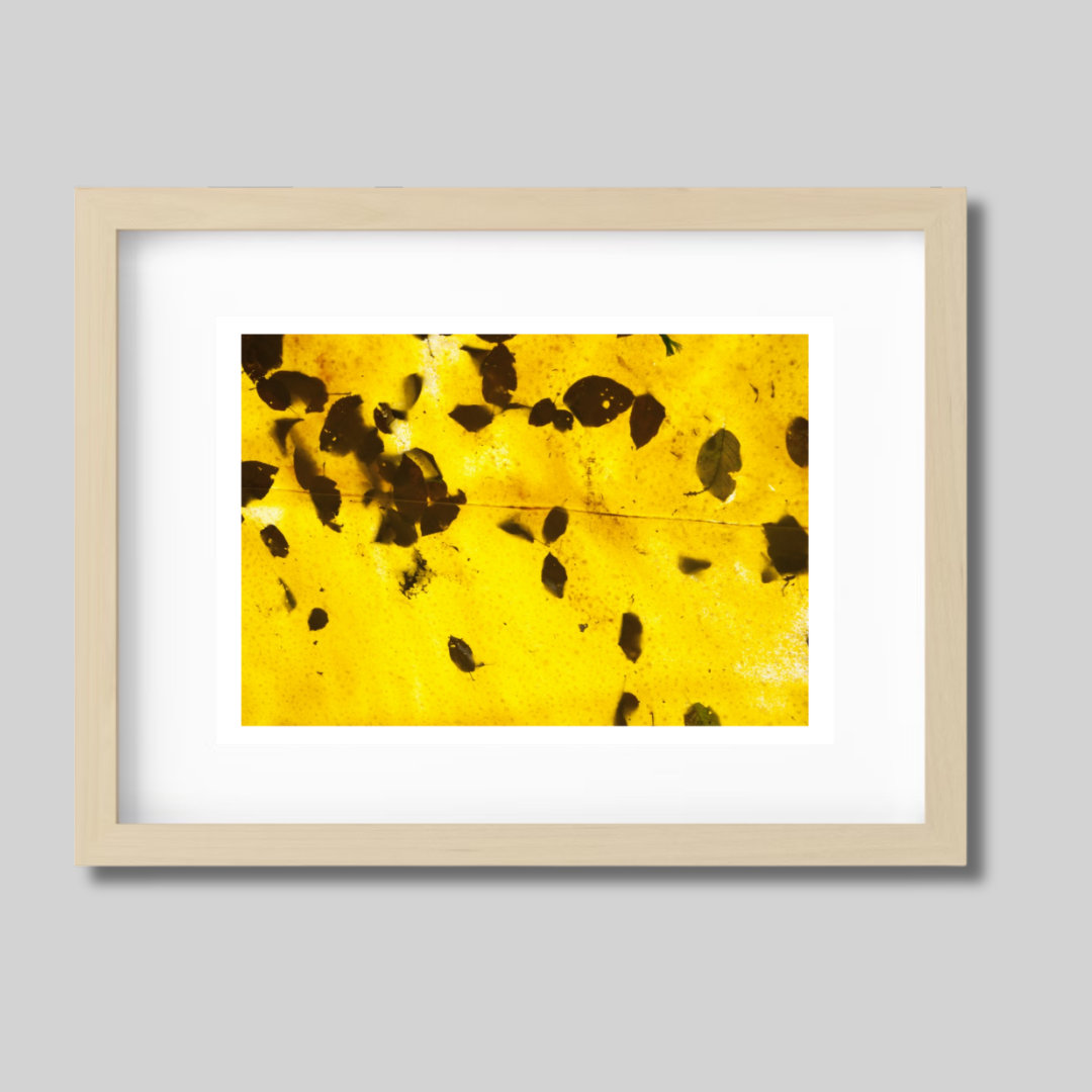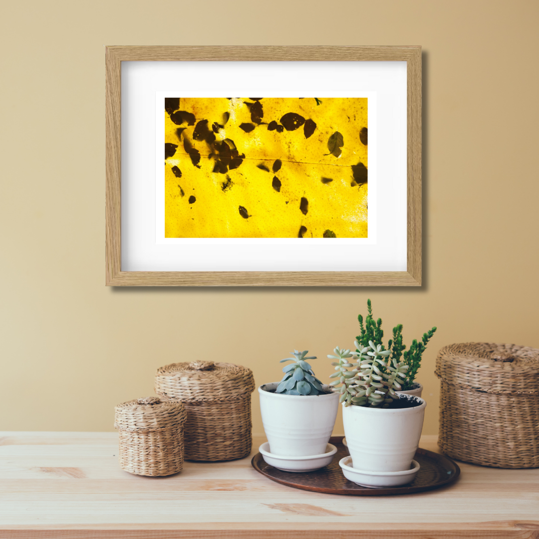 A striking exploration of light, color, and organic form, Harmony 2 captures the poetic stillness of nature through an abstract lens. With its vibrant golden hues and delicate leaf imprints, this fine art photograph radiates warmth and curiosity. Printed on museum-quality photo paper, this piece celebrates the quiet beauty found in overlooked details.