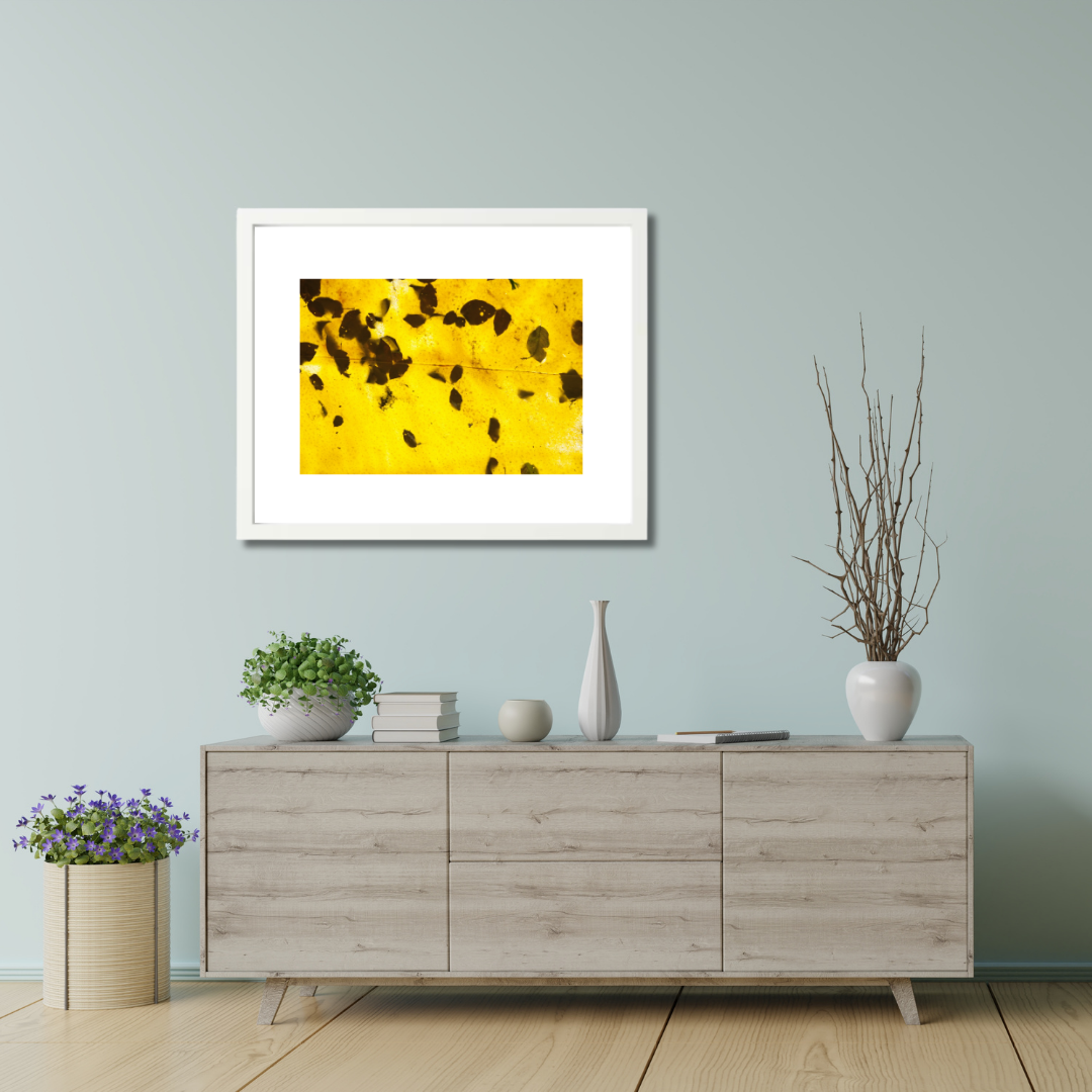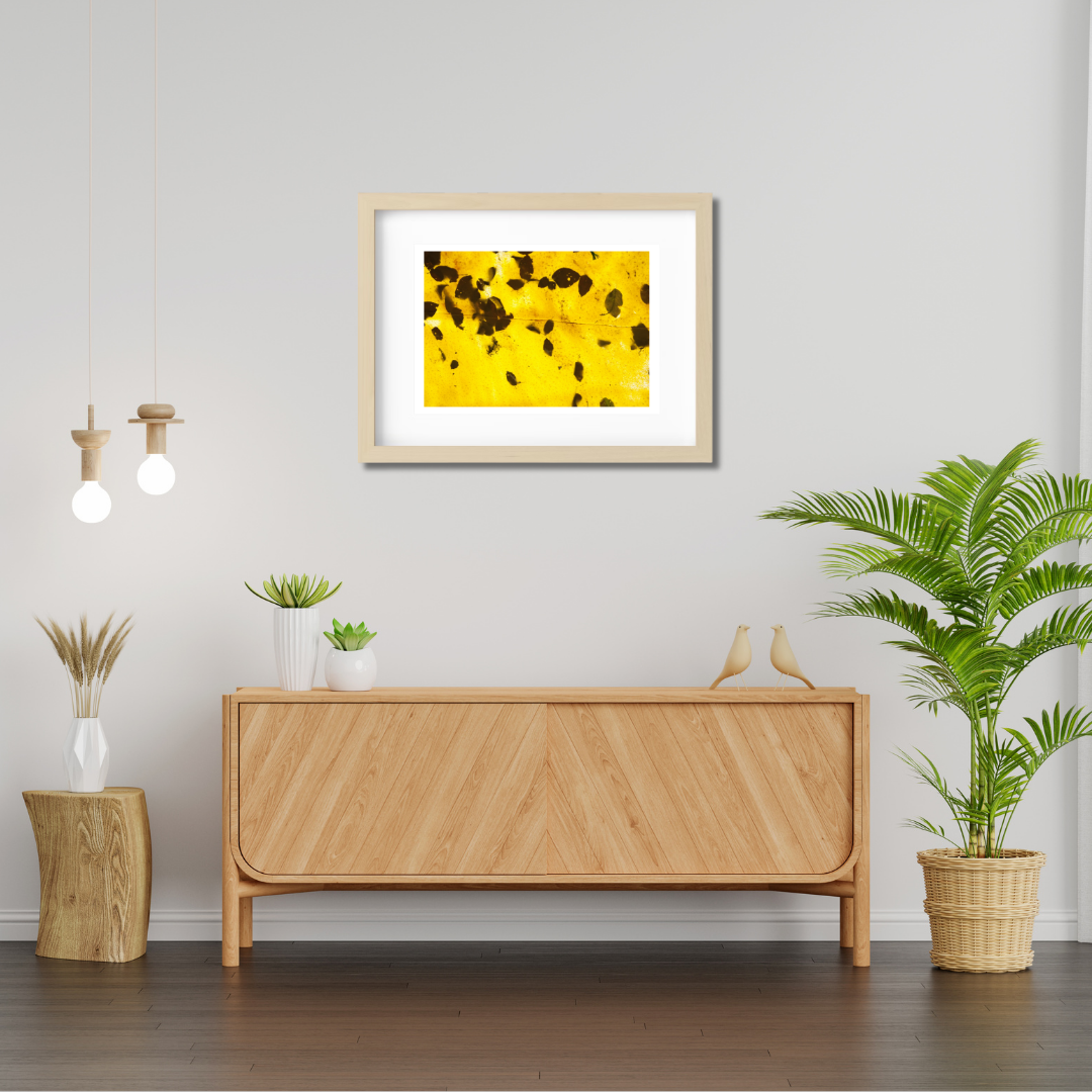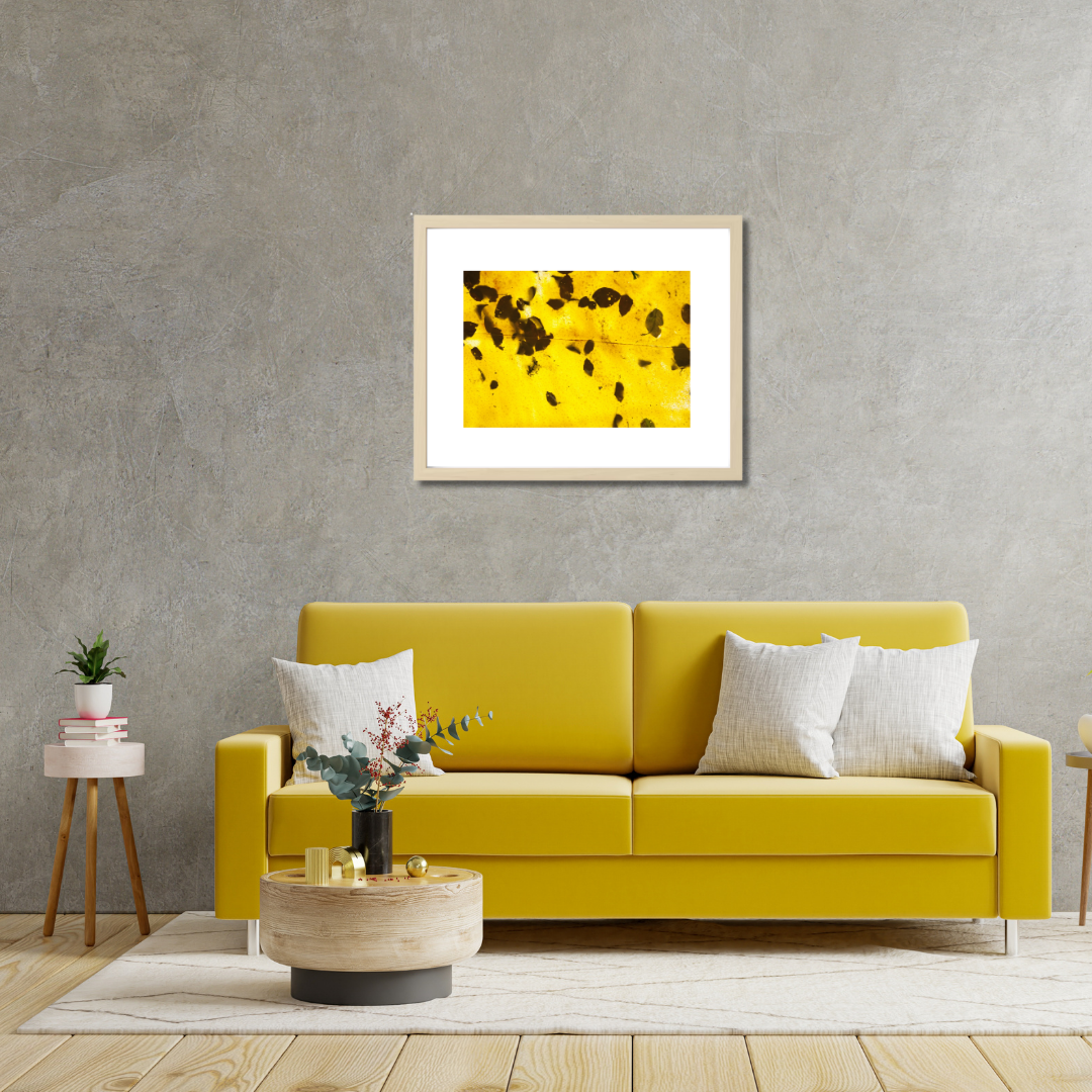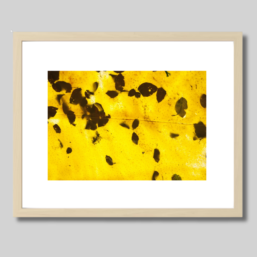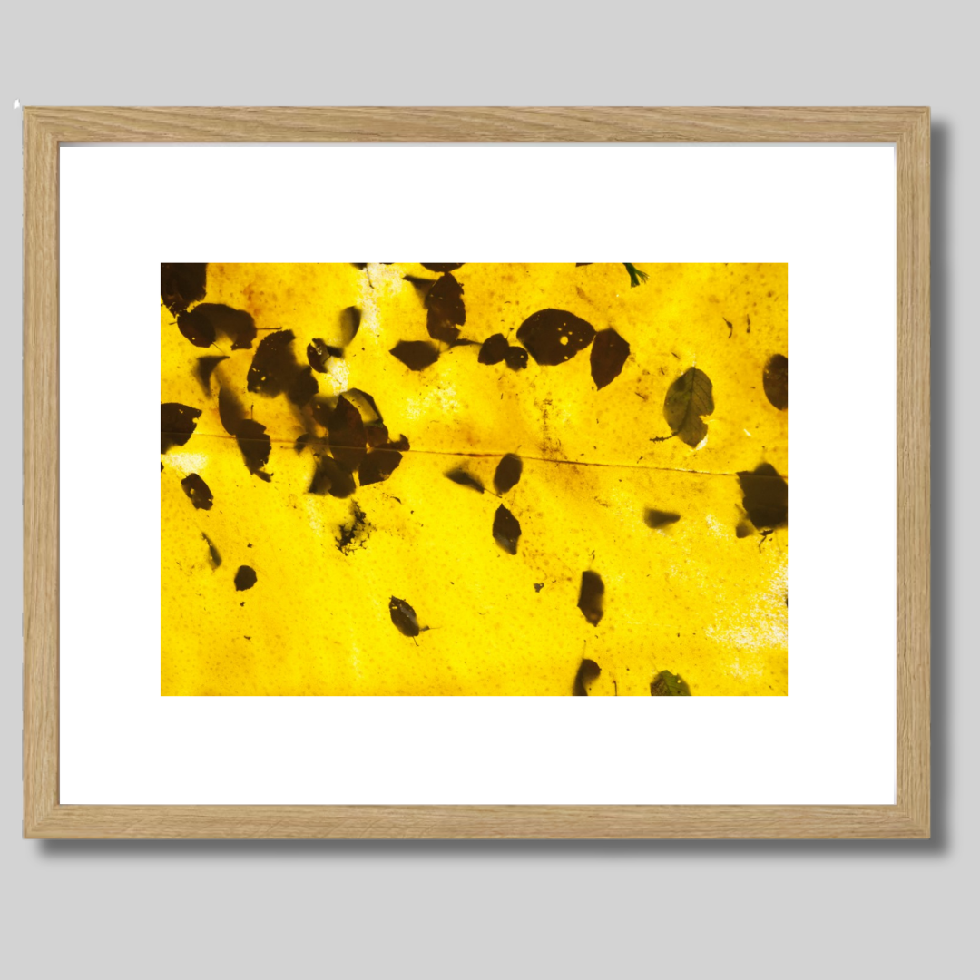 A striking exploration of light, color, and organic form, Harmony 2 captures the poetic stillness of nature through an abstract lens. With its vibrant golden hues and delicate leaf imprints, this fine art photograph radiates warmth and curiosity. Printed on museum-quality photo paper, this piece celebrates the quiet beauty found in overlooked details.
