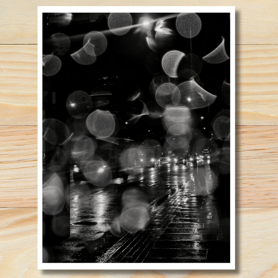 London Streets 4 captures a fleeting urban moment—rain-slicked pavement, headlights in motion, and the hazy magic of water on glass. In this moody monochrome composition, Sandeep Gupta blurs the line between documentary and dream, inviting you to see the city as both shadow and shimmer.