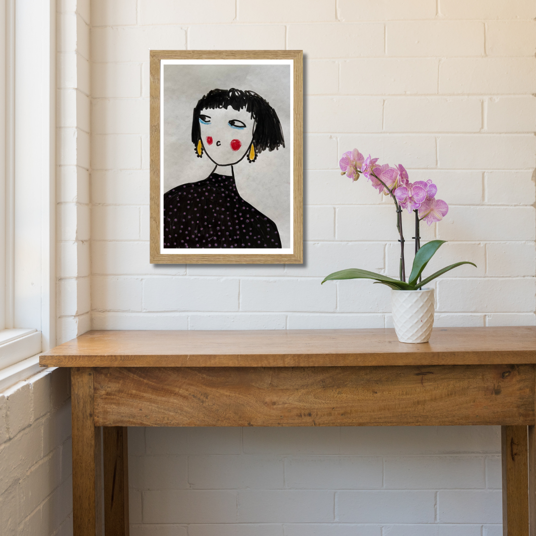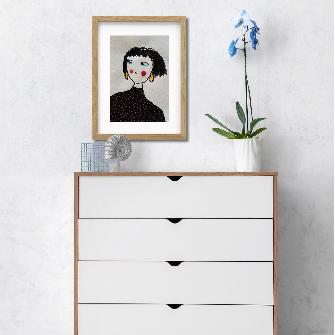 This artwork is perfect for eclectic interiors, contemporary spaces, or as a thoughtful gift for lovers of fashion, femininity, and individuality.