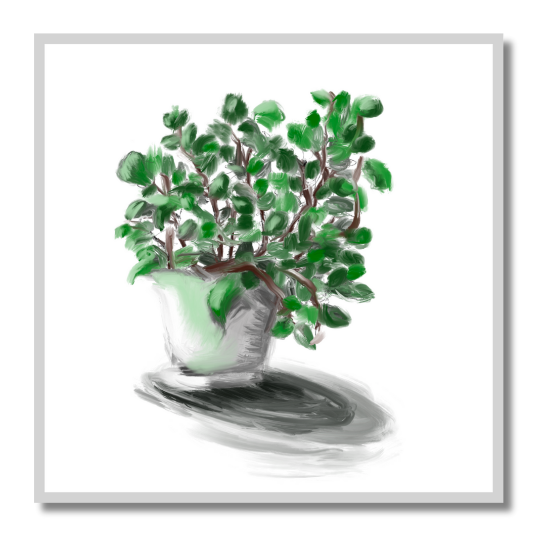 A vibrant celebration of growth and abundance, Plant 2 brings to life the joyful chaos of nature in a compact, flourishing form. Rendered with expressive digital brushstrokes, this lush indoor plant radiates a quiet energy—each leaf capturing movement and light. Ayda Pakzad Afshar's painterly style invites viewers to slow down and appreciate the beauty of ordinary, living things, perfectly suited for brightening any modern interior.