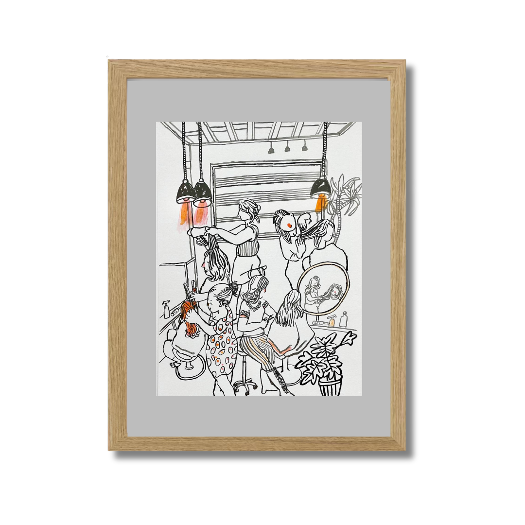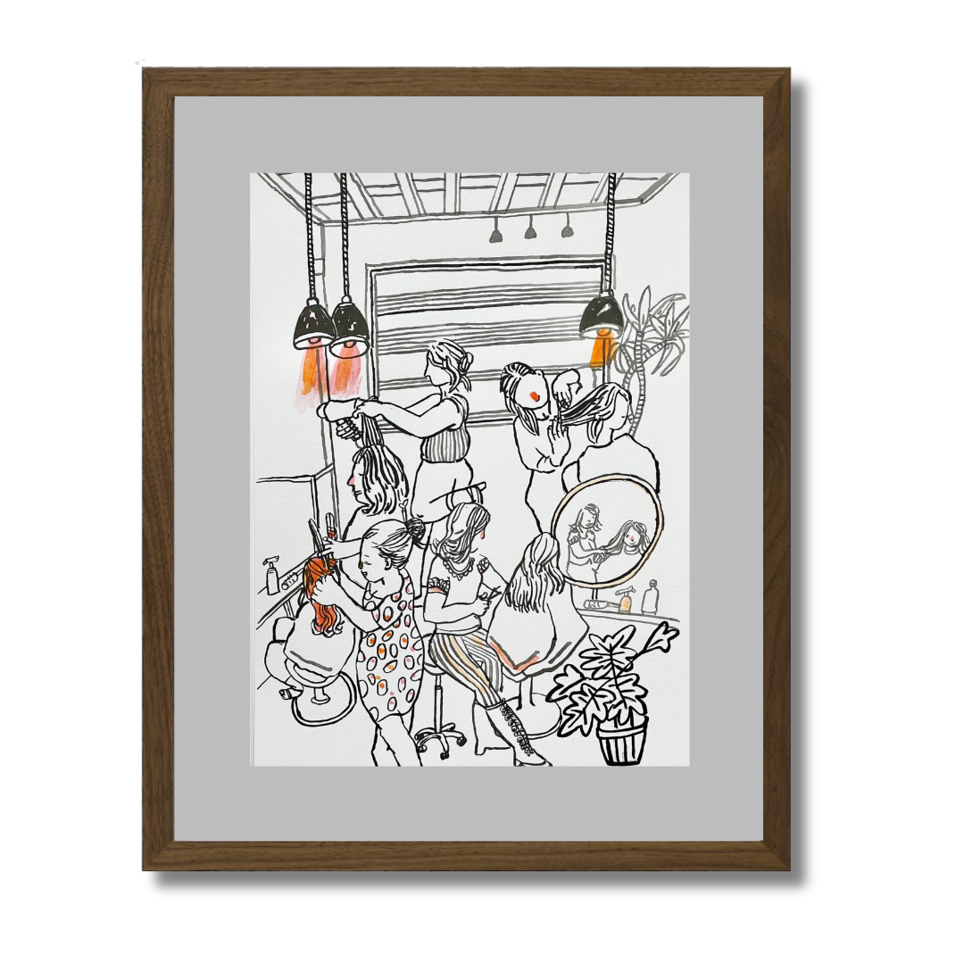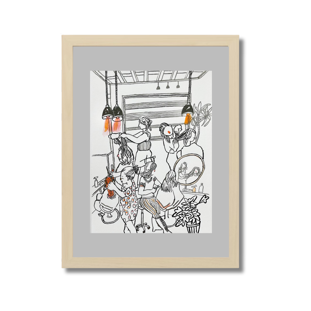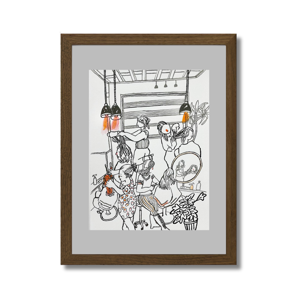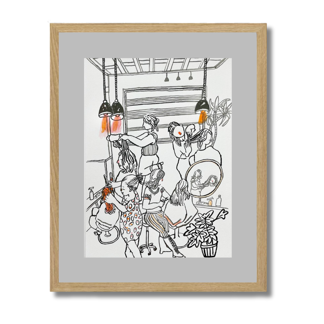 With fluid ink lines and washes of muted colour, Mahboobeh Yazdani captures the gestures, moods, and textures of a beauty salon space—subtle fragments of life seen through an artist’s lens. Full of emotional resonance and hand-drawn charm, this work stands alone or beautifully complements its companion piece.